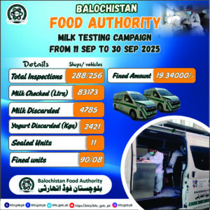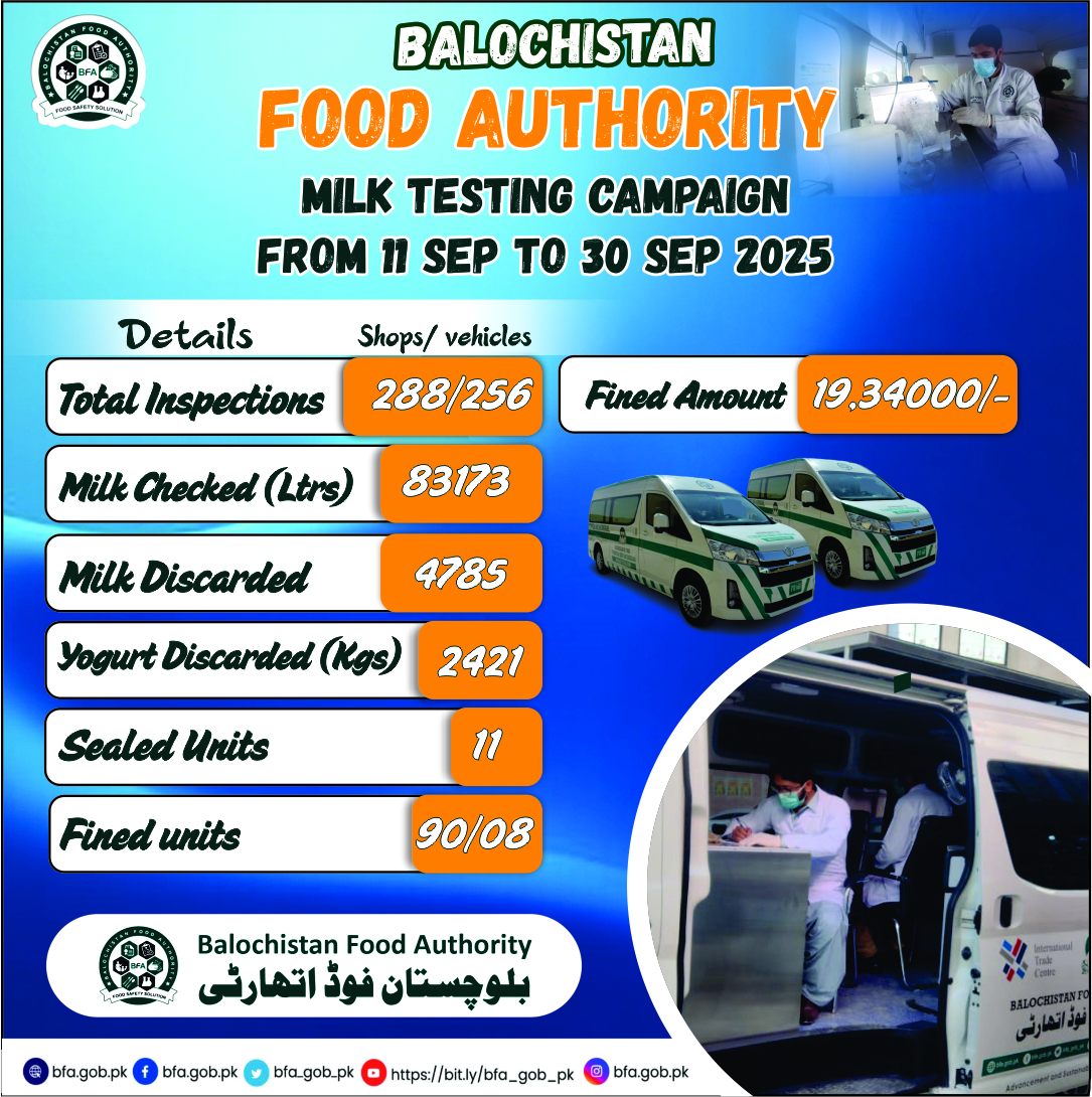As Director General of Balochistan Food Authority, I declare it my paramount mission to wage a relentless battle against adulteration, utilizing all available resources and maintaining a policy of absolute zero tolerance. Balochistan Food Authority is resolute in its commitment to eradicate the scourge of food adulteration.